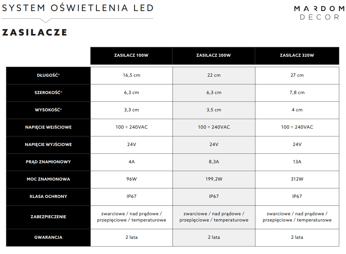 Zasilacze Mardom Decor są niezbędnym elementem w instalacji oświetleniowej, obniżając napięcie gniazdka (230V) do napięcia taśm LED (24V).