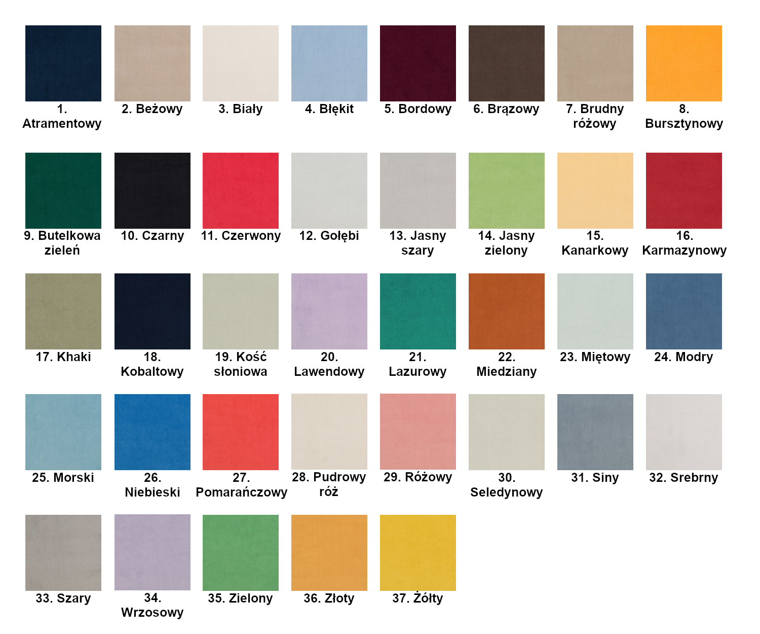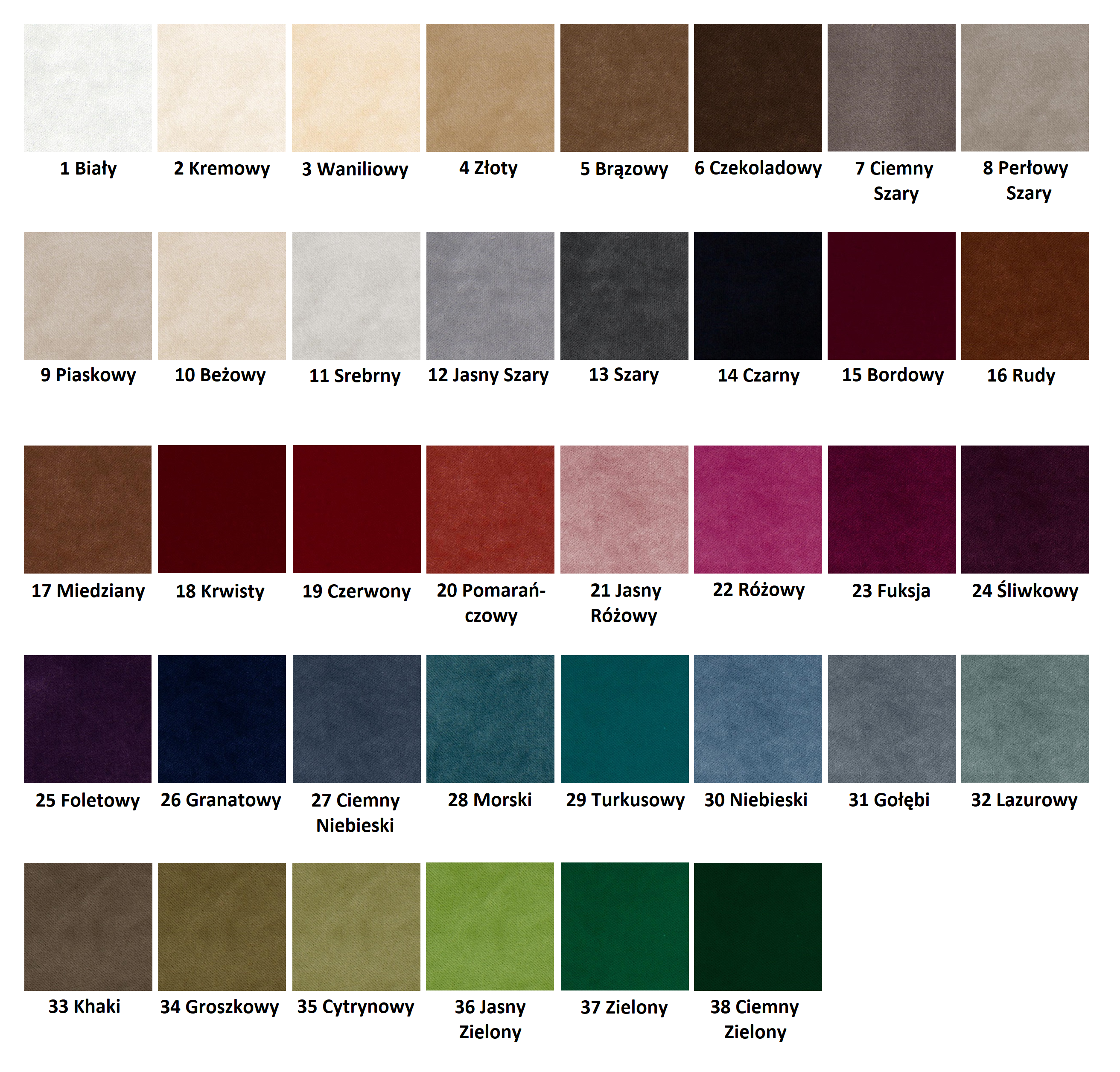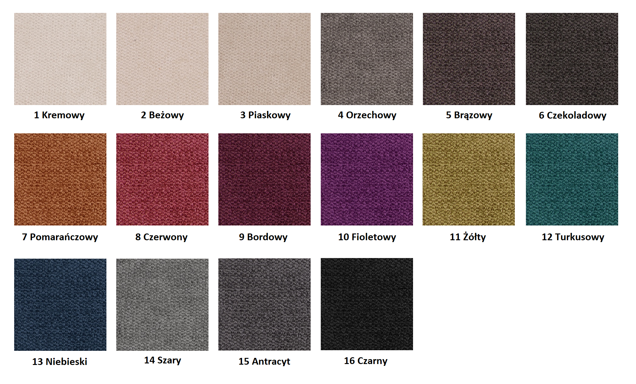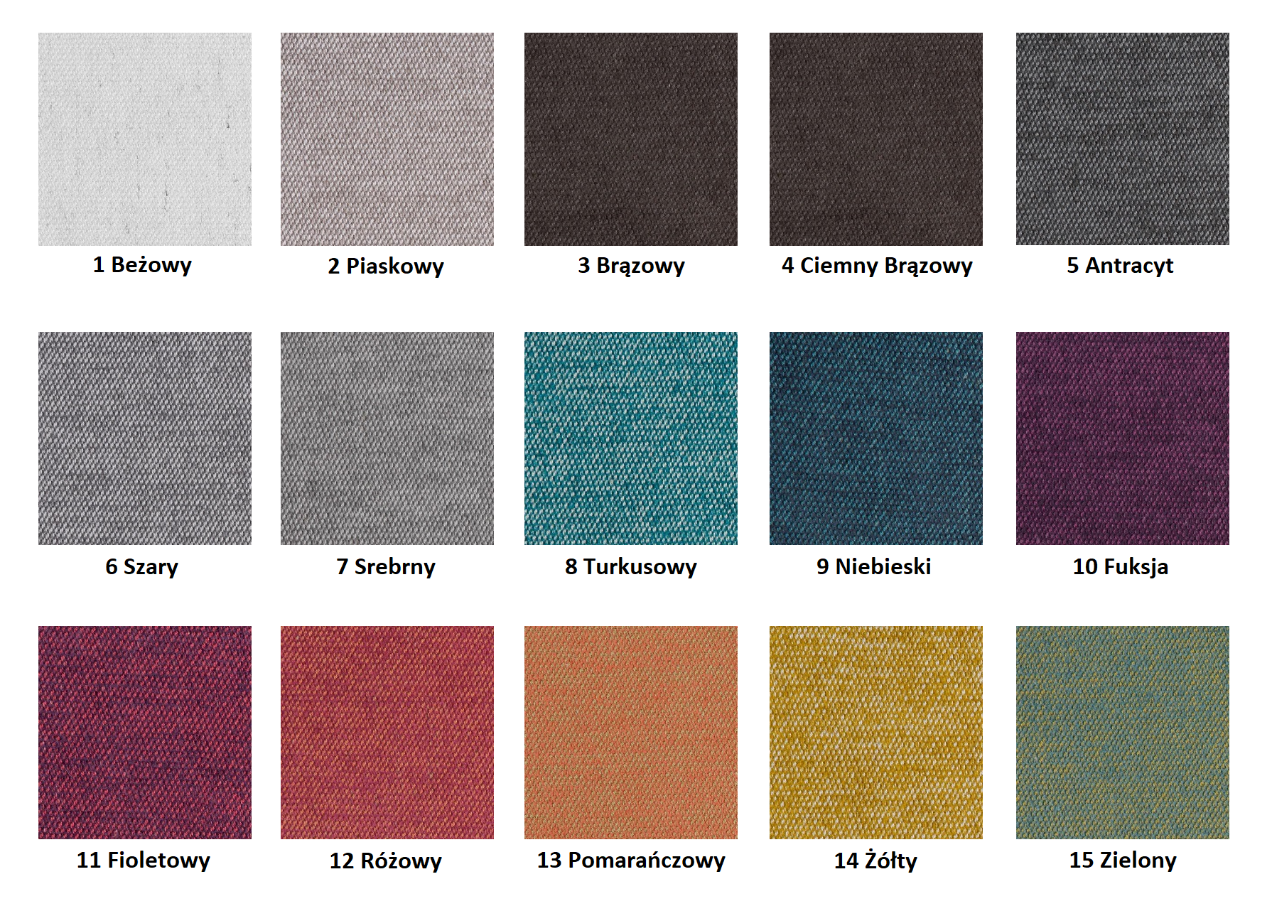 - Kolory tkanin przedstawione poniżej mogą odbiegać od rzeczywistego koloru,