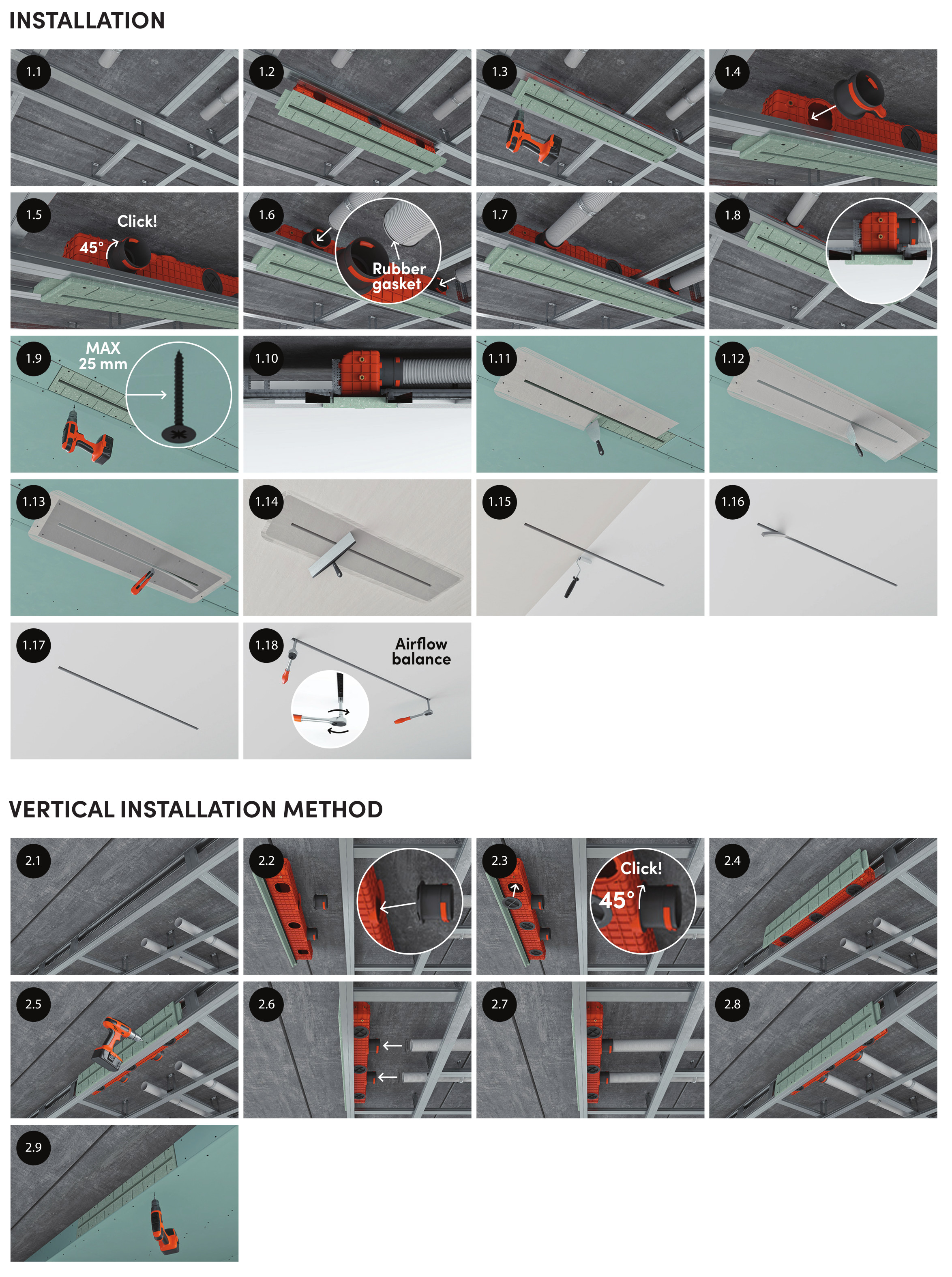 ERGOVENT LINEO PRO - niewidoczne nawiewniki liniowe przeznaczone do całkowitego ukrycia w sufitach ścianach z płyt gipsowo-kartonowych. Po zamontowaniu całość wykańczana jest gładzią szpachlową, a nawiewnik malowany kolorze sufitów/ścian. Widoczna zostaje jedynie minimalistyczna szczelina, która staje się stylowym detalem wnętrza.
