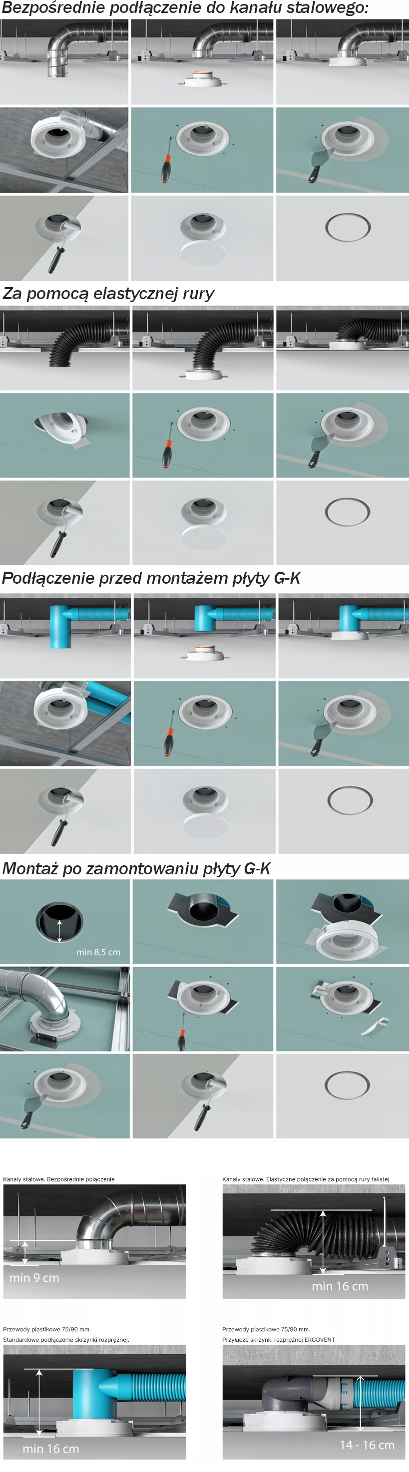 - Uniwersalność – pasuje do wszystkich standardowych anemostatów 125 mm, nie tylko ERGOVENT