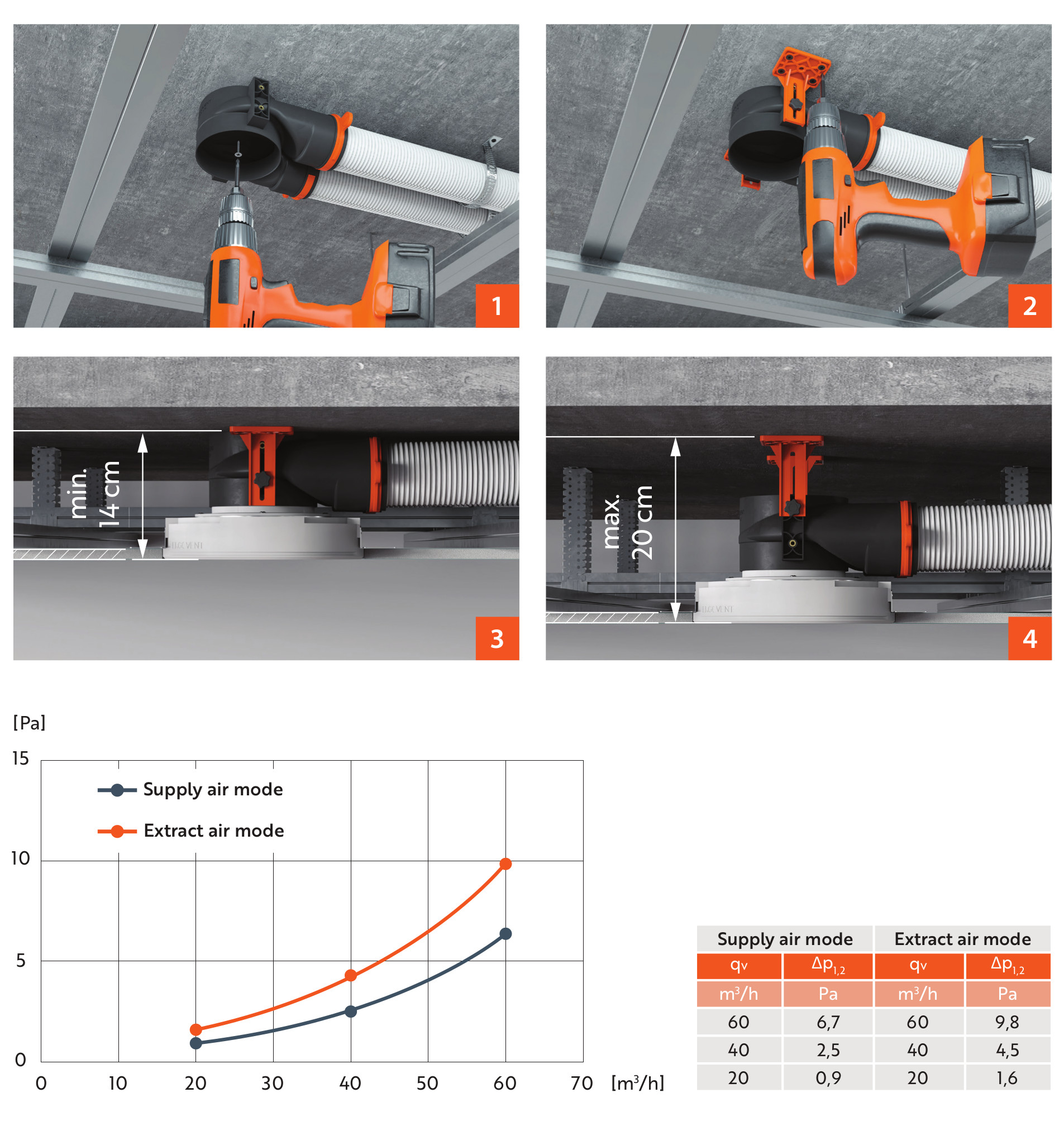 - Różne wysokości – wsporniki boczne można regulować w zakresie 14-20 cm i pomagają one wypoziomować skrzynkę rozprężną względem sufitu