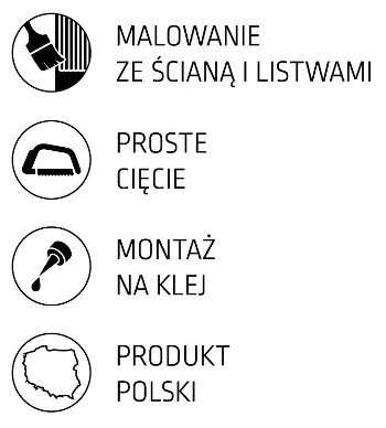 - Lamele Thalia są w kolorze białym, wykonane z utwardzonego polistyrenu w specjalnej technologii umożliwiającej malowanie dowolną farbą wodorozcieńczalną,
